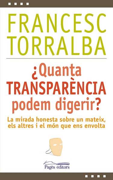 Volem saber i aquest desig de saber és l?expressió d?una de les inquietuds més pregones de l?ésser humà. La transparència ens permet, literalment, transcendir, anar més enllà del vidre, creuar un límit, passar una frontera, mentre que l?opacitat no obre camp de visió, no permet entreveure mínimament res del que hi ha més enllà. Anhelem la transparència, però no som conscients dels problemes que es poden derivar de la cultura global de la transparència. ¿Realment ho volem saber tot? ¿Vertaderament estem capacitats per digerir-ho tot? ¿Podrem suportar les piles d?escombraries que s?acumulen a les golfes de les institucions? ¿Els secrets de família guardats des de la infància? ¿Les trampes i hipocresies dels qui suposadament ens estimen? ¿Tindrem fetge per poder-les pair? ¿Estarem disposats veure com s?ensorren grans mites de l?honestedat? ¿Quanta transparència pot arribar a digerir l?estómac social? ¿Quanta dosi de realisme podem empassar-nos per viure i quanta dosi d?idealisme ens cal per construir horitzons?