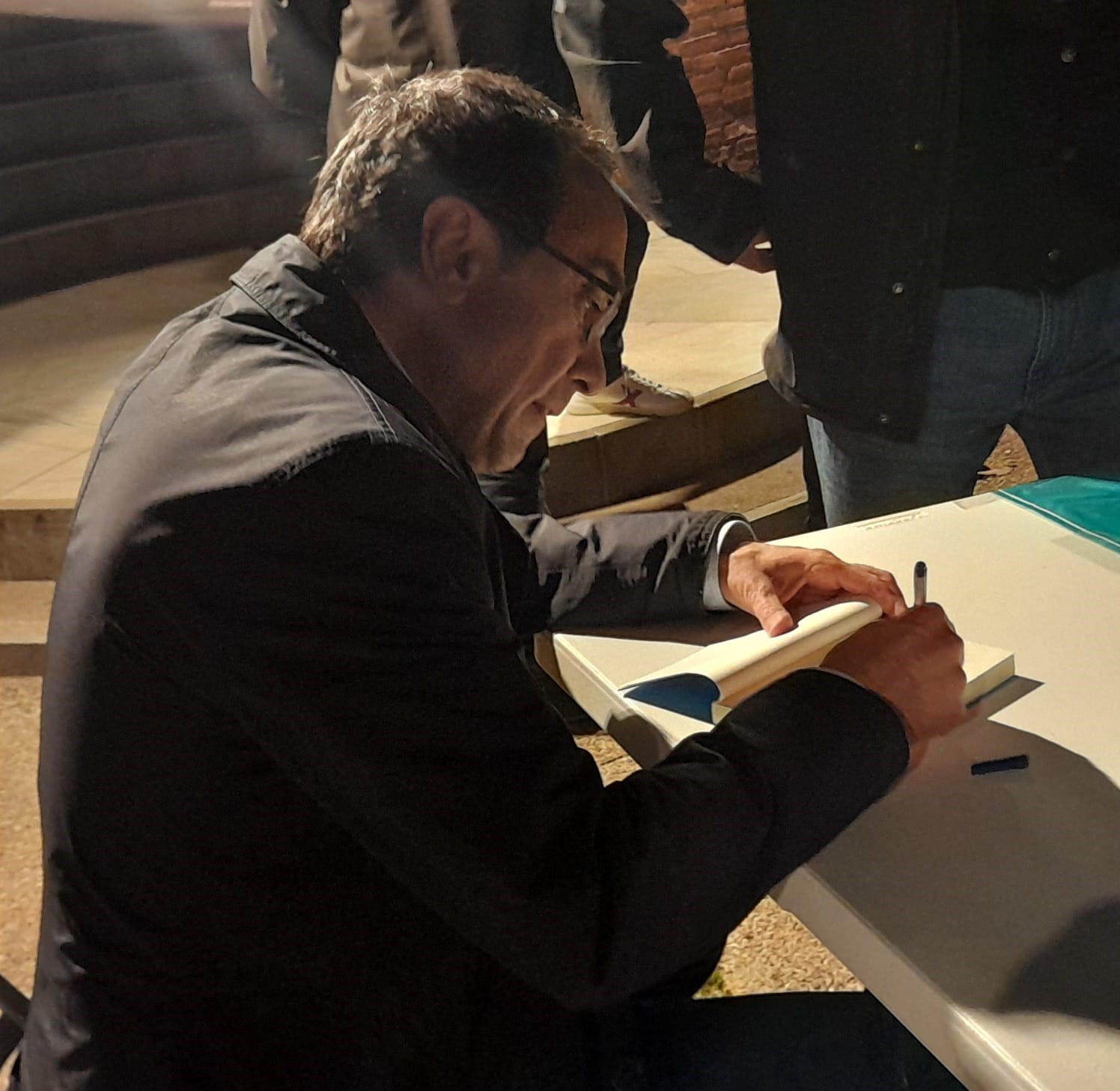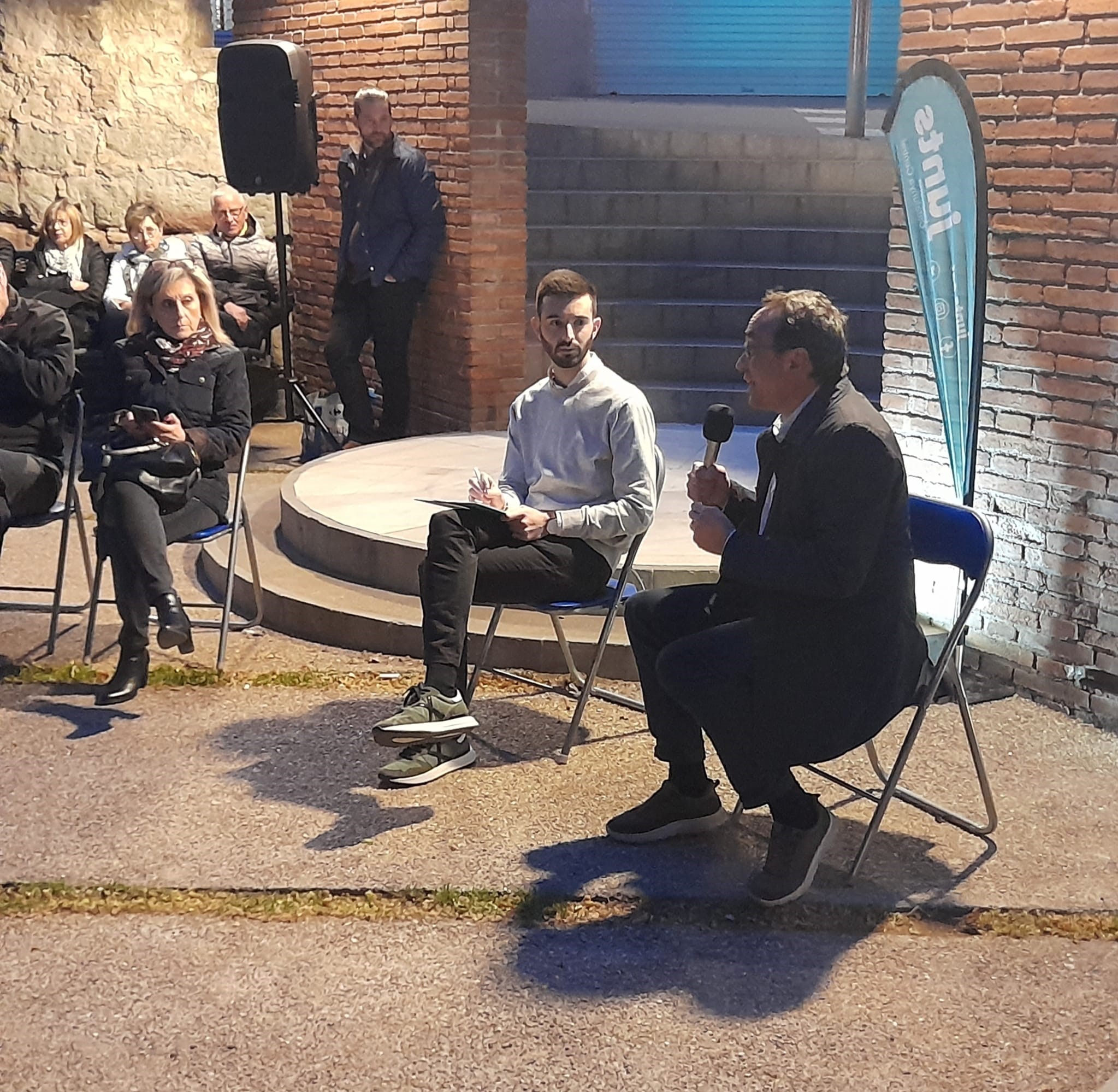 Ahir, just davant de la nostra llibreria, a la plaça de Lluís Companys, en Josep Rull, autor de “1 dia d’octubre i 2 poemes”, editat amb Símbol va tenir una tertúlia amb en Joan Porras, en un acte coorganitzat amb JUNTS Manresa.