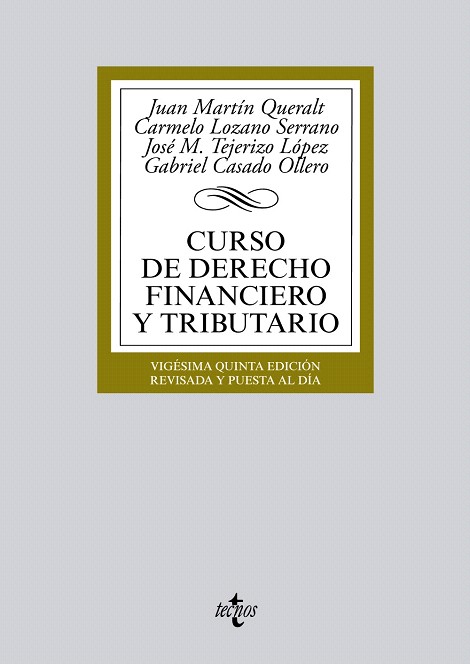 El " Curso de Derecho Financiero y Tributario " de los profesores Martín Queralt, Lozano Serrano, Tejerizo López y Casado Ollero constituye un análisis exhaustivo de los ordenamientos tributario y presupuestario vigentes en España, tanto en el ámbito estatal como en el autonómico y local...