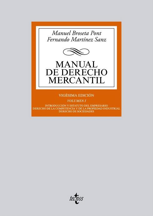 Sale a la luz el primer volumen de la vigésima edición del Manual de Derecho Mercantil, fieles al compromiso asumido hace ya algunos años de ofrecer anualmente una revisión del texto anterior, tratando de incluir aquellas novedades legislativas que hubieran sido aprobadas desde la aparición de la an...