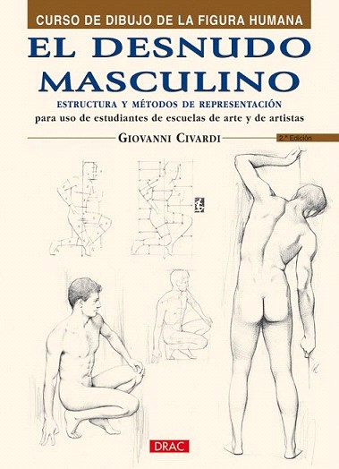 Guía para el estudio del desnudo masculino; la figura en posición erguida, sentada, arrodillada y reclinada. Procedimientos para dibujar correctamente el cuerpo humano: proporciones, encuadre, medidas, escorzo, iluminación, etc.
