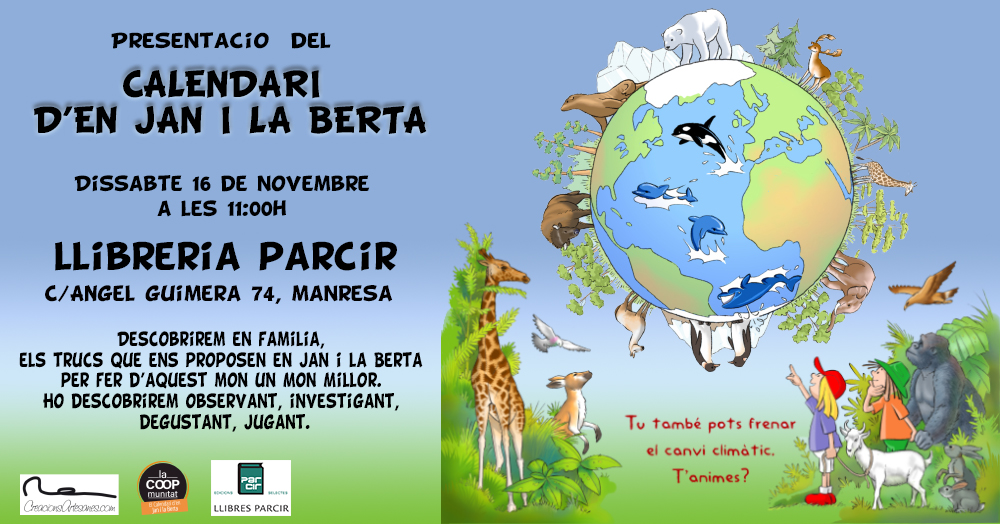 Descobrirem en família els trucs del calendari d'en Jan i la Berta per a un món molt millor si contribuim a frenar el canvi climàtic. Activitat infantil que es portarà a bon terme a la nostra llibreria, a partir de les 11 del matí del proper dissabte 16 de novembre. Us hi esperem!