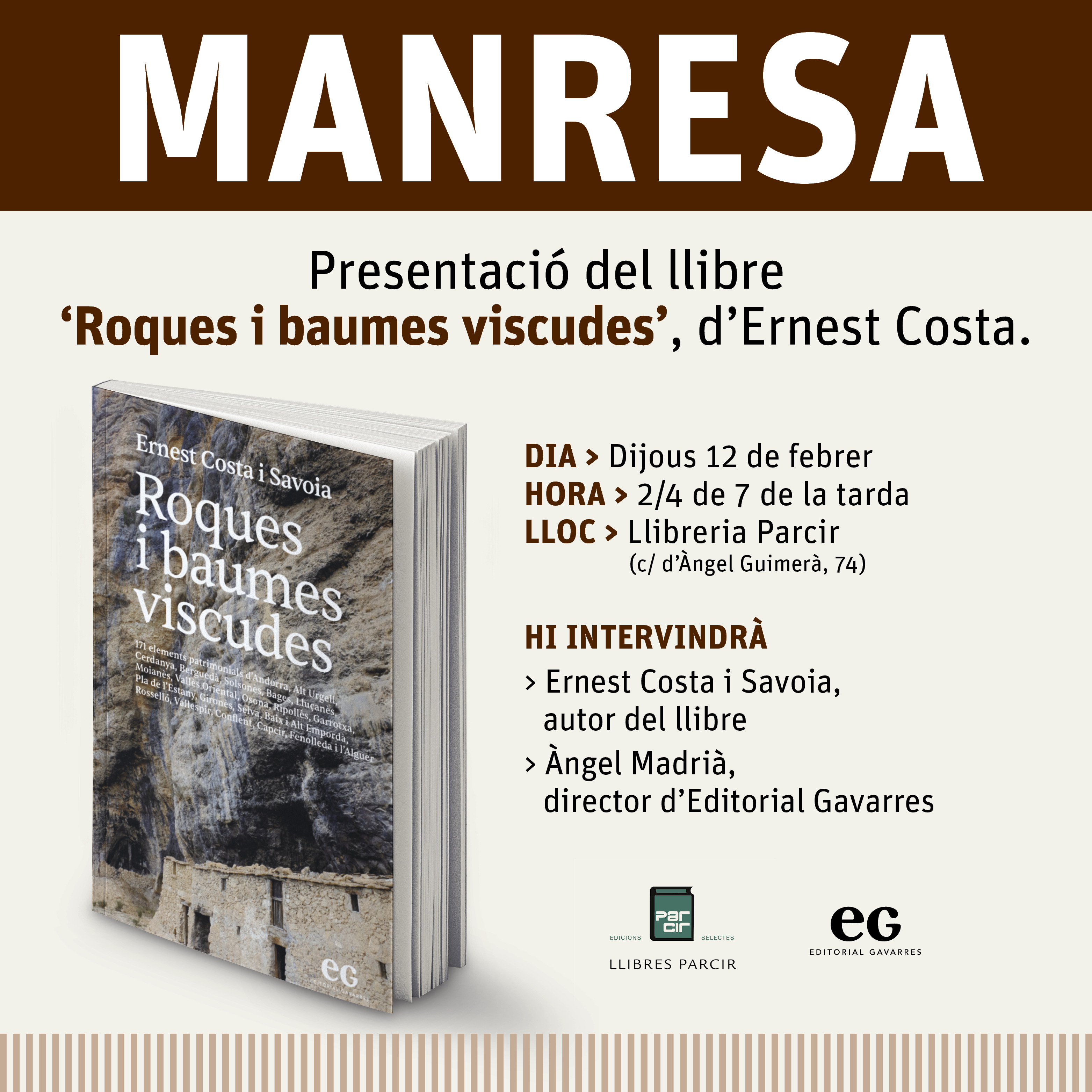 Us convidem a la presentació del llibre "Roques i baumes viscudes", d'Ernest Costa. Es farà a la nostra llibreria el dijous 12 de febrer de 2026 a les 18:30 h. Us hi esperem!