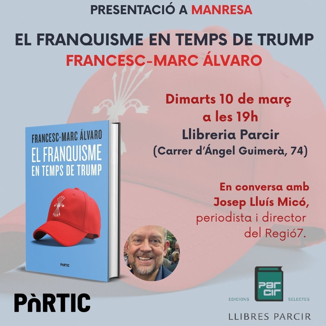 Us convidem a la presentació del llibre "El franquisme en temps de Trump", de Francesc-Marc Álvaro. Es farà a la nostra llibreria el dimarts 10 de març de 2026 a les 19 h. Us hi esperem!