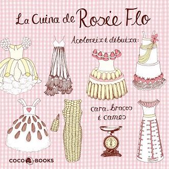 La col·lecció Rosie Flo està formada per llibres per a acolorir i dibuixar diferents escenes fantàstiques. El nen se submergeix en la proposta de cada pàgina, que li inspirarà completar diferents tipus de personatges: alts, baixos o grassos, que porten vestuaris excèntrics… i amb un relat vague, però estan mancats de cap, braços i cames. La creativitat del nen donarà el caràcter personal a les diverses escenes. LA CUINA DE ROSIE FLO. Vesteix-te amb els utensilis de la cuina, prepara una recepta i observa’n el procés amb la transparència del paper per a cuinar. Inspira’t i entra dins del pastís, vestits plens de galetes i un vestit amb especejament. Elegants coberts de metall per a vestir i unes verdures majestuoses…