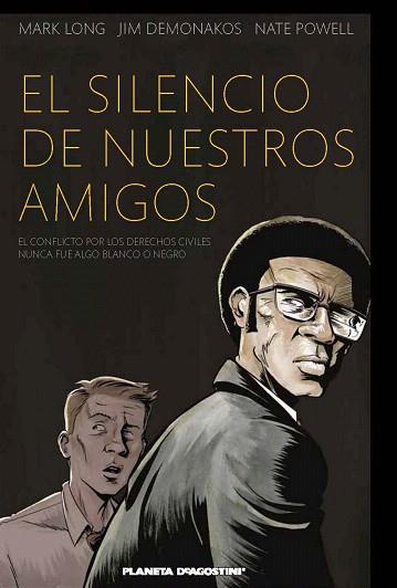 En Texas, en los años 60, una familia blanca de un barrio manifiestamente racista y una familia negra del distrito más pobre superan las barreras raciales de Houston, se sobreponen a la humillación, la degradación y la violencia para lograr la libertad de cinco estudiantes universitarios negros acusados de manera injusta del asesinato de un policía.Los dibujos del brillante Nate Powell (Shallow Me Whole) dan vida a la desgarradora historia de Mark Long. El silencio de nuestros amigos es una nueva e importante entrada en la obra literaria relacionada con los derechos civiles. Se trata de un potente retrato de un momento realmente volátil de la historia de los Estados Unidos.La historia está basada en hechos reales, acontecidos durante la infancia del autor.Título original: The silence of our friends USA