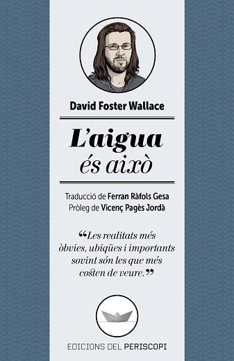 L'aclamat i malaguanyat escriptor David Foster Wallace reflexiona sobre alguns dels aspectes més importants de la vida en aquest manifest agut i profund. A mesura que busca respostes a preguntes gens senzilles, plasma les seves creences i deduccions sobre la naturalesa humana i dissecciona sense complexos una de les decisions més importants i alhora inconscients que prenem constantment: què pensem del món que ens envolta i de quina manera ho fem. Escrit amb l'intel·lecte i l'humor inconfusible de l'autor, L'aigua és això ens interpel·la sobre els reptes de la vida diària i ens ofereix reflexions provocadores que ens renoven a cada lectura.