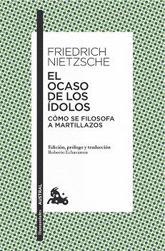 «Este escrito, de poco más de ciento cincuenta páginas, de tono alegre y fatal, como un demonio que ríe […], es un libro absolutamente excepcional; no hay nada más sustancioso, más independiente, más demoledor, más malvado. Si alguien quiere formarse brevemente una idea de cómo, antes de mí, todo se hallaba cabeza abajo, empiece por este escrito. Lo que en el título se denomina «ídolo» es sencillamente lo que hasta ahora fue llamado verdad. El ocaso de los ídolos, dicho claramente: la vieja verdad se acerca a su final». Así escribió Nietzsche sobre este libro en Ecce homo. Furiosamente denostado o alabado, y casi siempre mal interpretado, el autor de El ocaso de los ídolos lanza al lector la terrible sospecha de que quizás detrás de toda la acción humana, incluidas las moralmente más encomiables, se oculta el resentimiento de los débiles contra los más dotados para la existencia.