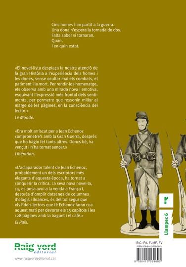 Cinc homes han partit a la guerra. Una dona n'espera la tornada de dos. Falta per saber si tornaran. Quan. I en quin estat.