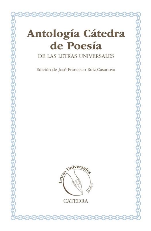 Con motivo de los treinta años de existencia de la colección Letras Universales, presentamos esta antología que reúne obras clásicas y modernas de todos los tiempos y de diversas lenguas (griego, latín, árabe, chino, francés, rumano, portugués, italiano, inglés, alemán y ruso), procedentes de los setenta volúmenes dedicados a la poesía (libros completos, antologías de autor, antologías panorámicas de época), de entre los más de 470 títulos que, a día de hoy, conforman la colección Letras Universales.