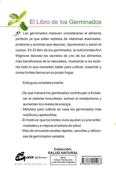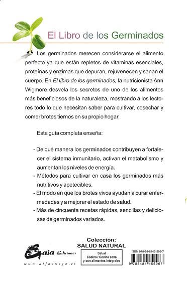 Los germinados merecen considerarse el alimento perfecto ya que están repletos de vitaminas esenciales, proteínas y enzimas que depuran, rejuvenecen y sanan el cuerpo. En El libro de los germinados, la nutricionista Ann Wigmore desvela los secretos de uno de los alimentos más beneficiosos de la naturaleza, mostrando a los lectores todo lo que necesitan saber para cultivar, cosechar y comer brotes tiernos en su propio hogar. Esta guía completa enseña: - De qué manera los germinados contribuyen a fortalecer el sistema inmunitario, activan el metabolismo y aumentan los niveles de energía. - Métodos para cultivar en casa los germinados más nutritivos y apetecibles. - El modo en que los brotes vivos ayudan a curar enfermedades y a mejorar el estado de salud. - Más de cincuenta recetas rápidas, sencillas y deliciosas de germinados variados.