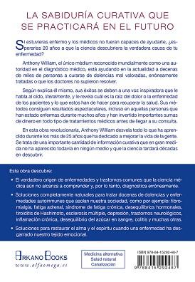 LA SABIDURÍA CURATIVA QUE SE PRACTICARÁ EN EL FUTURO Si estuvieras enfermo y los médicos no fueran capaces de ayudarte, ¿esperarías 20 años a que la ciencia descubriera la verdadera causa de tu enfermedad? Anthony William, el único médium reconocido mundialmente como una autoridad en el diagnóstico médico, está ayudando en la actualidad a decenas de miles de personas a curarse de dolencias mal valoradas, erróneamente tratadas o que los doctores no supieron resolver. Según explica él mismo, sus éxitos se deben a una voz inspiradora que le habla al oído, literalmente, y le revela cuál es la raíz del dolor o la enfermedad de los pacientes y lo que estos han de hacer para recuperar la salud. Sus métodos consiguen resultados espectaculares, incluso en aquellas personas que han estado enfermas durante muchos años y han invertido importantes sumas de dinero en todo tipo de tratamientos médicos antes de llegar a su consulta. En esta obra revolucionaria, Anthony William desvela todo lo que ha aprendido durante los más de 25 años que ha dedicado a mejorar la vida de la gente. Se trata de una importante cantidad de información curativa que en gran medida no ha aparecido todavía en ningún medio y que la ciencia tardará décadas en descubrir. Esta obra descubre: ? El verdadero origen de enfermedades y trastornos comunes que la ciencia médica aún no alcanza a comprender y, por lo tanto, diagnostica erróneamente. ? Soluciones completamente naturales para tratar docenas de dolencias y enfermedades autoinmunes que asolan nuestra sociedad, como por ejemplo: fibromialgia, fatiga adrenal, síndrome de fatiga crónica, desequilibrios hormonales, tiroiditis de Hashimoto, esclerosis múltiple, depresión, trastornos neurológicos, inflamación crónica, desequilibrio del azúcar en sangre, colitis y muchas otras. ? Soluciones para restaurar el alma y el espíritu cuando una enfermedad ha desgarrado nuestro tejido emocional.