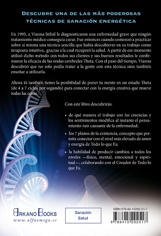 DESCUBRE UNA DE LAS MÁS PODEROSAS TÉCNICAS DE SANACIÓN ENERGÉTICA En 1995, a Vianna Stibal le diagnosticaron una enfermedad grave que ningún tratamiento médico conseguía curar. Fue entonces cuando comenzó a practicar sobre sí misma una técnica sencilla que había descubierto en su trabajo como terapeuta intuitiva, gracias a la cual recuperó la salud. A partir de ese momento utilizó dicho método con todos sus clientes y sus buenos resultados le confirmaron la eficacia de las ondas cerebrales Theta. Con el paso del tiempo, Vianna descubrió que no solo podía tratar a la gente con esta técnica sino también enseñar a utilizarla. Ahora tú también tienes la posibilidad de poner tu mente en un estado Theta (de 4 a 7 ciclos por segundo) para conectar con la energía creativa que mueve todas las cosas. Con este libro descubrirás: ? de qué manera el trabajo con las creencias y los sentimientos modifica al instante el pensamiento-raíz causante de la enfermedad; ? los 7 planos de la existencia, concepto que permite conectar con el nivel más elevado de amor y energía de Todo lo que Es; ? la habilidad de producir cambios a todos los niveles ─físico, mental, emocional y espiritual─, colaborando con el Creador de Todo lo que Es.
