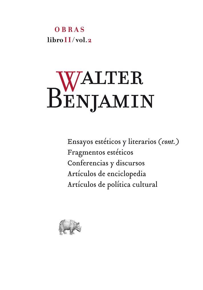 Se trata del cuarto de los once volúmenes de esta edición realizada a partir de la publicada en Alemania por la prestigiosa Suhrkamp Verlag, en edición de Rolf Tiedemann y Hermann Schweppenhäuser (con la colaboración de Theodor W. Adorno y Gerhom Scholem). Incluye los «Ensayos estéticos y literarios...