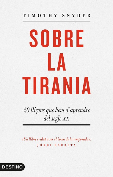 «No som més savis que els europeus que van veure com la democràcia cedia al feixisme, al nazisme o al comunisme al segle xx. L?únic avantatge que tenim és que podem aprendre de la seva experiència. I ara és un bon moment per fer-ho». Timothy Snyder, un dels intel·lectuals més prestigiosos dels Estats Units, planteja que la història ens ha de servir d?advertència per impedir l?avanç de la tirania en un moment en què l?ordre polític sembla amenaçat.