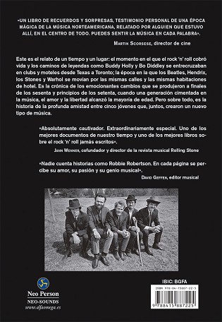 Este es el relato de un tiempo y un lugar: el momento en el que el rock ‘n’ roll cobró vida y los caminos de leyendas como Buddy Holly y Bo Diddley se entrecruzaban en clubs y moteles desde Texas a Toronto; la época en la que los Beatles, Hendrix, los Stones y Warhol se movían por las mismas calles y las mismas habitaciones de hotel. Es la crónica de los emocionantes cambios que se produjeron a finales de los sesenta y principios de los setenta, cuando una generación cimentada en la música, el amor y la libertad alcanzó la mayoría de edad. Pero sobre todo, es la historia de la profunda amistad entre cinco jóvenes que, juntos, crearon un nuevo tipo de música.