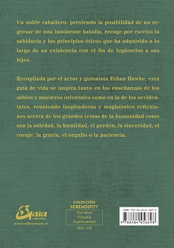 Un noble caballero, previendo la posibilidad de no regresar de una inminente batalla, recoge por escrito la sabiduría y los principios éticos que ha adquirido a lo largo de su existencia con el fin de legárselos a sus hijos. Recopilada por el actor y guionista Ethan Hawke, esta guía de vida se inspira tanto en las enseñanzas de los sabios y maestros orientales como en la de los occidentales, reuniendo inspiradoras y magistrales reflexiones acerca de los grandes temas de la humanidad como son la soledad, la humildad, el perdón, la sinceridad, el coraje, la gracia, el orgullo o la paciencia.