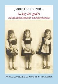 Judith Rich Harris —autora de la famosa y controvertida obra El mito de la educación, que, a causa de sus innovadoras tesis que replanteaban algunas creencias tradicionales, generó gran polémica a nivel mundial cuando se publicó en 1998, y abrió nuevos caminos en el campo de la psicología— le da ahora una nueva vuelta de tuerca a su teoría con No hay dos iguales, donde, según Arcadi Espada, «expone con solidez y formidable pasión sus argumentos».