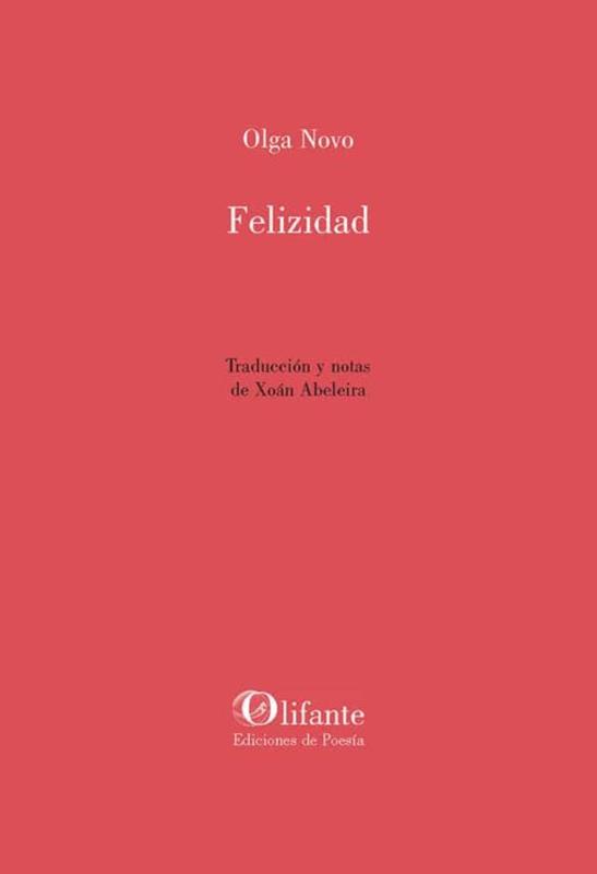 Felizidad, de Olga Novo, es la versión en castellano de Feliz idade, libro que acaba de ser galardonado con el Premio de la Crítica 2019 de poesía en gallego. Felizidad reúne poemas de diferentes épocas vitales de la autora, con el nexo común de las relaciones familiares. La muerte de su padre y el nacimiento de su hija marcan el tono y el camino de un poemario intenso y especial que, como indica Claudio Rodríguez Fer, contiene «mucho amor y mucho dolor (...) en este libro auténtico y profundo como la autora».