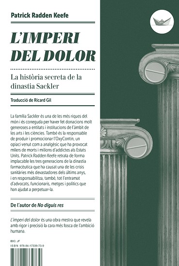La família Sackler és una de les més riques del món i és coneguda per haver fet donacions molt generoses a entitats i institucions de l'àmbit de les arts i les ciències. També és la responsable de produir i promocionar l'OxyContin, un opiaci venut com a analgèsic que ha provocat milers de morts i milions d'addictes als Estats Units. Patrick Radden Keefe retrata de forma implacable les tres generacions de la dinastia farmacèutica que ha causat una de les crisis sanitàries més devastadores dels últims anys, i en responsabilitza, també, tot l'entramat d'advocats, funcionaris, metges i polítics que han ajudat a perpetuar-la. L'imperi del dolor és una obra mestra que revela amb rigor i precisió la cara més fosca de l'ambició humana.