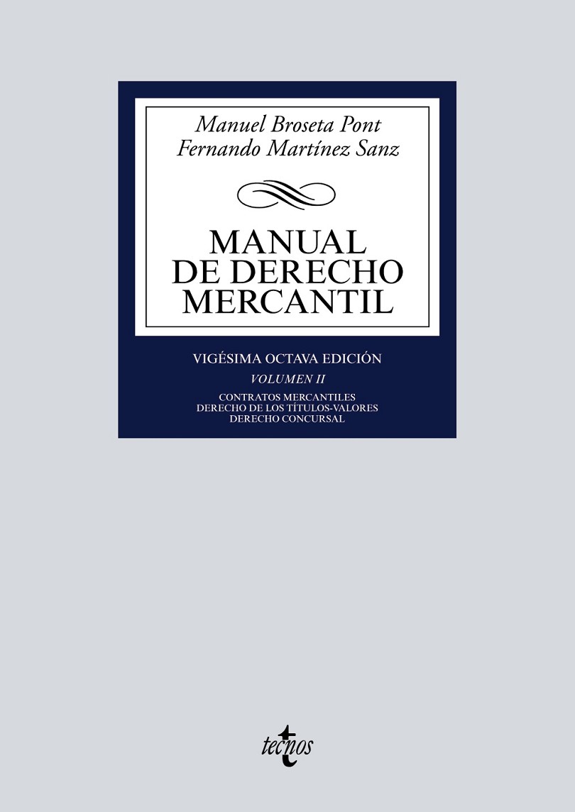 Este segundo volumen de la vigésima octava edición del Manual de Derecho Mercantil se ocupa de tres aspectos que resultan fundamentales para el estudio de la disciplina. El primero de ellos lo conforma la contratación mercantil y los mercados financieros. El segundo de los bloques de materias lo constituye el derecho de los títulos-valores. Pese a la progresiva reducción que se aprecia en la práctica en el uso de estos instrumentos, se considera que su estudio continúa siendo fundamental para la adecuada comprensión de la disciplina mercantil. En fin, el volumen se cierra con los capítulos dedicados al Derecho concursal. Con todo ello se aspira a ofrecer una visión sistemática y comprensible del Derecho mercantil actual, cada vez más complejo, pero sin perder de vista que, ante todo, se trata de un manual universitario, que ha de suministrar al alumno las bases para el estudio razonado de la disciplina, antes que un simple repertorio de datos o preceptos legales.