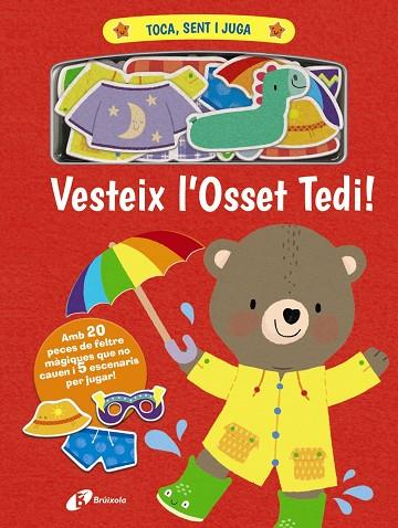 L'Osset Tedi vol anar a la platja. Què es posarà, un abric o un banyador? Ajudem-lo a triar! Un llibre tendre i bonic que inclou cinc escenes per posar-hi al damunt les peces de feltre màgiques perquè els més petits juguin i aprenguin a vestir l'Osset Tedi.