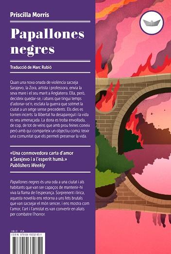 "Quan una nova onada de violència sacseja Sarajevo, la Zora, artista i professora, envia la seva mare i el seu marit a Anglaterra. Ella, però, decideix quedar-se, i abans que tingui temps d’adonar-se’n, esclata la guerra que sotmet la ciutat a un setge sense precedents. Els dies es tornen incerts: la llibertat ha desaparegut i la vid es veu amenaçada. La dona es troba envoltada, de cop, de tot de veïns que amb prou feines coneix però amb qui comparteix un objectiu comú: teixir una comunitat que els permeti preservar la vida. Papallones negres és una oda a una ciutat i als habitants que van ser capaços de mantenir-hi viva la flama de l’esperança. Sorprenent i lírica, aquesta novel·la ens retorna a uns fets brutals que van sacsejar el món sencer, i ens mostra com l’amor, l’art i l’amistat es van convertir en aliats per combatre l’horror."