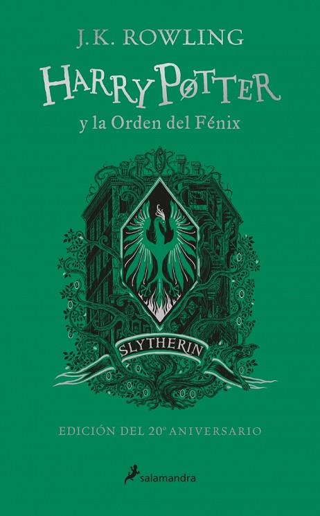 Celebra el 20º aniversario de Harry Potter con esta edición especial de Harry Potter y la Orden del Fénix dedicada a la casa de Slytherin, famosa por su orgullo, ambición y astucia. La casa de Slytherin está en auge: han expulsado a Dumbledore de Hogwarts y la Brigada Inquisitorial patrulla los pasillos durante el quinto año de Harry Potter en el colegio. Los Slytherins deben escoger un bando. Severus Snape practica un peligroso juego de engaños, la ancestral casa de los Black está dividida y Bellatrix Lestrange, la fiel seguidora del Señor Tenebroso, se enfrenta a su primo Sirius Black en un combate a muerte. «El director cree que no es conveniente que eso continúe ocurriendo. Quiere que te enseñe a cerrar tu mente al Señor Tenebroso.» Son malos tiempos para Hogwarts. Tras el ataque de los dementores a su primo Dudley, Harry Potter comprende que Voldemort no se detendrá ante nada para encontrarlo. Muchos niegan que el Señor Tenebroso haya regresado, pero Harry no está solo: una orden secreta se reúne en Grimmauld Place para luchar contra las fuerzas oscuras. Harry debe permitir que el profesor Snape le enseñe a protegerse de las brutales incursiones de Voldemort en su mente. Pero éstas son cada vez más potentes, y a Harry se le está agotando el tiempo...