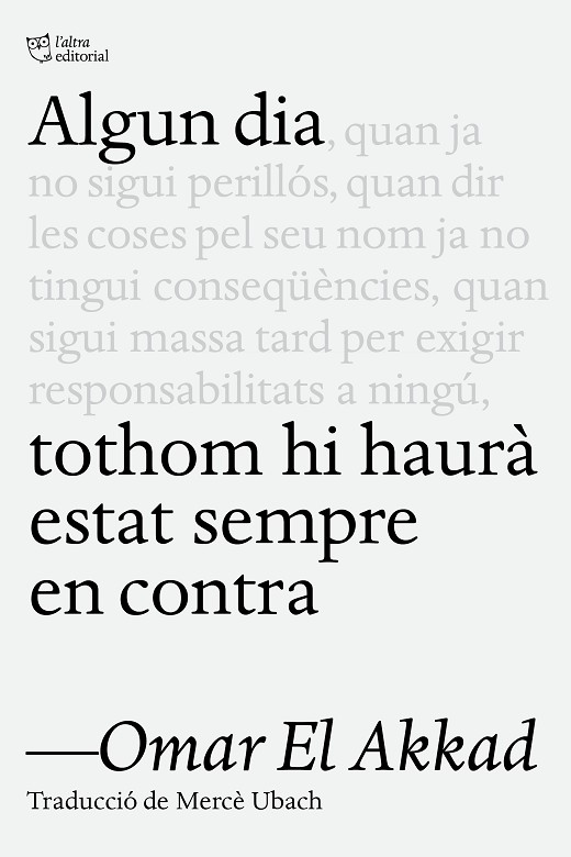 El 25 d’octubre de 2023, tot just tres setmanes després del bombardeig de Gaza, Omar El Akkad va tuitejar: «Algun dia, quan ja no sigui perillós, quan dir les coses pel seu nom ja no tingui consequ¨ències, quan sigui massa tard per exigir responsabilitats a ningú, tothom hi haurà estat sempre en contra». El tuit va tenir més de 10 milions de visualitzacions. Com a immigrant nascut a Egipte i instal·lat al món occidental des de molt jove, Omar El Akkad estava convençut que Occident era una terra de llibertat i justícia. Però en els últims vint anys, durant els quals ha exercit de periodista en primeríssima línia i ha sigut testimoni de la matança indiscriminada de la població de Gaza per part d’Israel, ha arribat a la conclusió que la base moral sobre la qual s’ha erigit el món Occidental és una gran mentida. Algun dia tothom hi haurà estat sempre en contra és una crònica punyent i incomòda que clama contra el silenci eixordador dels mitjans de comunicació europeus i americans, de la classe política en general —i, molt concretament, de les esquerres benpensants—, i denuncia la incapacitat i les trampes del llenguatge a l’hora de descriure les atrocitats que s’estan cometent a Gaza i les consequ¨ències devastadores de no prendre partit, de no mullar-se i, en definitiva, de no empatitzar amb els altres. Un llibre cru i trasbalsador, imprescindible.