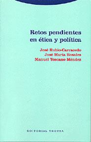La situación de cambio de siglo y de milenio constituye una buena ocasión para efectuar un examen global de los problemas socio-morales más candentes en la actualidad y, más en concreto, del estado de la cuestión en cada uno de ellos. Se trata de seleccionar aquellas cuestiones actuales de mayor calado que no han conseguido todavía, pese a ser largamente debatidas, un nivel razonable de entendimiento y de consenso. El resultado son estos «retos pendientes en ética y política», sin que el orden de su enumeración prejuzgue su mayor o menor importancia: feminismo (¿qué feminismo?), nacionalismo (¿es posible un nacionalismo moderado?), modelo actual de democracia (¿democracia republicana versus democracia liberal?), la posición del individuo en su comunidad (¿ciudadanía versus poderes estatales?), justicia y mercado (las defensas y críticas de la teoría normativa del mercado), y, por último, universalismo ético y derechos humanos: ¿es posible, y, en caso afirmativo, en qué condiciones, universalizar los derechos humanos al modo de un universalismo moral?