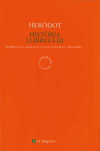 «Heus aquí l'exposició de la recerca d'Heròdot d'Halicarnàs, per tal que ni els esdeveniments dels homes s'esvaneixin amb el temps, ni restin sense llustre fets grans i admirables, uns de realitzats pels grecs, d'altres pels bàrbars; ni s'oblidi, sobretot, la causa per la qual van guerrejar els uns ...