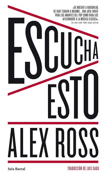 Con El ruido eterno Alex Ross consiguió un éxito sin precedentes en un libro sobre música: la unanimidad crítica y la popularidad entre los lectores lo convirtieron en el gran autor internacional sobre el tema. En Escucha esto, el crítico musical del New Yorker continúa su apasionada exploración de este arte, y «nos demuestra que comprender la música es una forma de entender el mundo» (Time).
