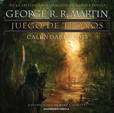 Este calendario recoge bellas ilustraciones basadas en los cinco libros publicados hasta la fecha: Juego de tronos, Choque de reyes, Tormenta de espadas, Festín de cuervos y Danza de dragones.