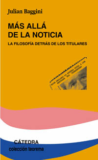 Julian Baggini examina los términos y conceptos filosóficos y analiza lo que subyace detrás de los titulares de las noticias en los periódicos. En ellos leemos lo que sucede en el mundo, pero, ¿cómo sabemos lo que es verdad, o sabemos incluso, si hay alguna verdad? Los asuntos sexuales de un presidente son discutidos y analizados por todo el mundo, pero ¿es la vida privada de alguien asunto que desde el punto de vista moral concierna a los demás? Se declara una guerra contra el terrorismo, pero ¿qué justifica el uso de fuerzas armadas cuya consecuencia es la inevitable pérdida de vidas humanas? El autor explora el papel de la filosofía mostrando los límites y el alcance que el análisis filosófico tiene en los temas de actualidad y cómo puede ayudarnos a conocerlos, creerlos o valorarlos. La guerra, la verdad, el medio ambiente, las creencias religiosas, la eutanasia o el significado del valor son algunos de los temas de este libro.
