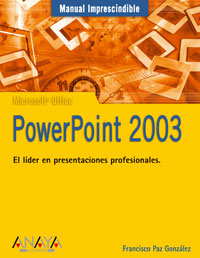 PowerPoint es una herramienta de gran popularidad. Su facilidad de manejo ligada a sus prestaciones hacen de ella una aplicación fundamental en la creación de presentaciones.PowerPoint 2003 es la nueva versión del programa, en la que se integran múltiples mejoras y novedades. Entre estas destacan la...