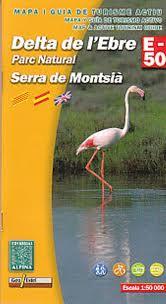Delta de l'Ebre. ? Mapa excursionista i guia ? Escala: 1:50.000 ? Equidistància: 20 m ? Corbes mestres: a 100 m ? Ombrejat ? Usos del sòl representats a 3 nivells ? Quadrícula UTM amb divisions de 5 kms ? Compatible GPS ? Itineraris marcats ? Guia amb excursions i dades d'interès