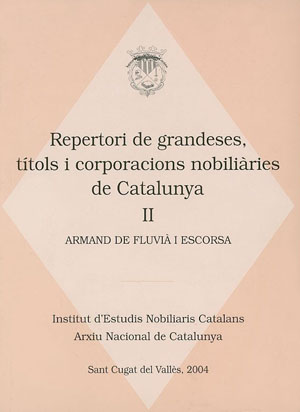Volum II L'elaboració d'aquest repertori pretén donar a conèixer els títols i les corporacions nobiliàries actualment existents al nostre país i esdevenir una guia pràctica d'interrelació i coneixement dels seus membres. El resultat del treball és una publicació que mancava a Catalunya, que constitueix una visió de síntesi molt completa de la realitat actual i del component familiar i humà de la noblesa a casa nostra.