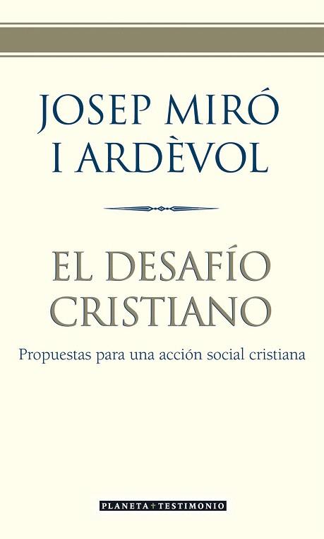 Hay un cierto laicismo que ha convertido a la religión en el enemigo al que hay que expulsar del espacio público. Sin embargo, para poder funcionar el estado necesita un substrato importante de personas religiosas.El desafío cristiano propone una recuperación de la respuesta cristiana para aportar soluciones a las necesidades sociales del hombre y la mujer de nuestro tiempo. Josep Miró i Ardèvol responde al laicismo absolutista y excluyente con una concepción de la sociedad basada en la comunidad responsable y la armonía entre libertad y responsabilidad, que recupera el sentido social de la familia, la tradición y la justicia social como valores abiertos a todos los que compartimos una herencia cultural cristiana, seamos o no religiosos.