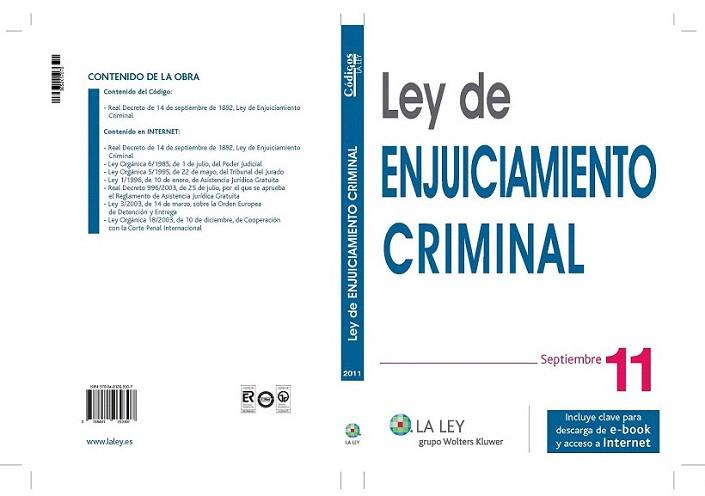 Texto íntegro del Real Decreto de 14 de septiembre de 1882, Ley de Enjuiciamiento Criminal junto con un completo índice analítico de voces.