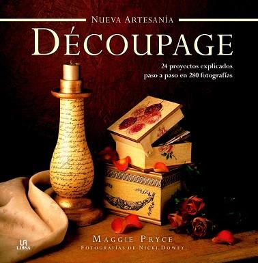 El découpage o arte de aplicar recortes de papel a un fondo es una afición muy versátil y accesible porque todo lo que se necesita son un par de tijeras, fotografías o dibujos recortados, pegamento y una superficie limpia. En la introducción se detallan todos los materiales necesarios para producir diseños de découpage propios y el libro contiene 24 proyectos originales.