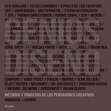 Un homenaje a los procesos del pensamiento creativo de casi setenta diseñadores internacionales, artistas, agencias creativas, ilustradores y tipógrafos destacados que han sido entrevistados especialmente para este libro. Con temas que van desde el negocio de la creatividad hasta el impacto de la tecnología: ideas para estimular la creatividad, reaccionar a los cambios tecnológicos y sociales o trabajar con clientes de diferente índole. Un testimonio y una gran explicación sobre cómo cada limitación, oportunidad, fracaso u observación pueden abrir la puerta a una idea de diseño. Llenas de modestia, las entrevistas revelan una búsqueda eterna por la genialidad creativa; un objetivo intemporal tanto para el estudiante como para el genio. El diseño es un arte y un oficio desafiante. Uno puede aprender el funcionamiento de un programa y pulsar las mismas teclas del ordenador un día tras otro, o alterar el aspecto de las cosas, cambiar la forma en que percibimos lo ordinario y contemplamos lo extraordinario. Alcanzar los retos que son adecuados para cada uno exige un pensamiento inteligente y un trabajo duro. Como los diseñadores son, en esencia, solucionadores de problemas, están bien preparados para mantener la mente en movimiento. Los detonantes de la creatividad pueden ser estímulos internos o externos. Este libro ofrece la chispa externa que acelera el motor interno que, a su vez, estimula el mecanismo generador de resultados emocionantes, únicos y originales.