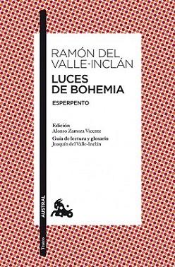 Ramón María del Valle-Inclán (Villanueva de Arosa, Pontevedra, 1866-Santiago de Compostela, 1936), presidente del Ateneo de Madrid y director de la Academia de Bellas Artes de Roma, fue una de las personalidades más interesantes de la generación del 98. Gran poeta, forjador del idioma, creador del esperpento y autor de novelas históricas, Valle-Inclán hizo el mejor teatro de su tiempo. COLECCIÓN AUSTRAL presenta en este volumen LUCES DE BOHEMIA, esperpento trágico de la vida literaria de la época. Al degradarse la realidad aparece la farsa y, en un segundo nivel, el esperpento; «Los héroes clásicos reflejados en los espejos cóncavos dan el Esperpento», aclara Valle-Inclán. Aquí el espejo cóncavo es una conciencia dolorida, una conciencia moral que escandaliza o aterra. Resulta patético que quien vea la verdad sea un ciego, Max Estrella, soñador perdido en un Madrid absurdo y hambriento. La magnífica Introducción de Alonso Zamora Vicente, de la Real Academia Española, y la ilustrativa Guía de lectura y Glosario preparados por Joaquín del Valle-Inclán nos descubren el universo mágico del genial escritor, el entramado de relaciones entre la realidad y el texto y la visión voluntariamente deformadora y crítica que se oculta bajo la caricatura; un completo y sugerente análisis de las claves de la creación valleinclaniana.