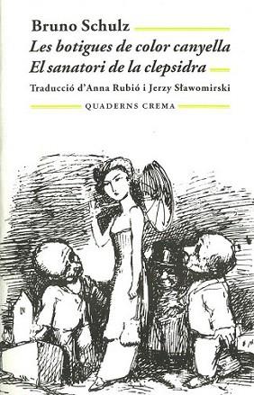 Les botigues de color canyella (1935) i El sanatori de la clepsidra (1938) són, gairebé, un sol llibre. No cal explicar qui va ser Schulz. Un professor d’arts i oficis, un dibuixant sorprenent que es va aferrar a la literatura com si no hi hagués res més al món. Un egoista que només tenia relacions epistolars. Un neoplatònic pervers, un mitòman... L’han comparat amb Kafka, però en els llibres de Schulz, és el pare qui es transforma (en cranc, en bomber, en homúncul, en no-res), i a més no hi ha ni llei ni condemna, sinó el desig torbat dels homes per redimir-se del tedi i expressar-se caòticament, com la matèria. Alguns es fan diminuts com ninots, d’altres vegeten en taules de cerveseria, extàtics i llepats per la humitat; d’altres es fan tan plans que es confonen amb les façanes de les cases; d’altres són pures cames lascives, caps assedegats, aspirants a maniquins o a desaparèixer en el vent, a “retirar suaument les mans del timó de la nau encallada de la vida”.
