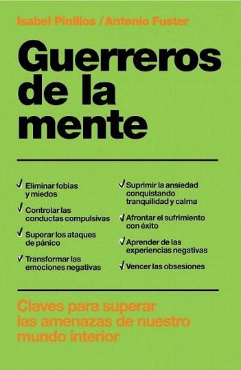 ¿Quién no tiene o conoce a alguien que sufra ansiedad, algún tipo de fobia, ataques de pánico, temores infundados o miedo extremo? En nuestra sociedad, estos tipos de trastornos están cada vez más generalizados. Los guerreos de la mente nos enseña cómo funcionan sus mecanismos y cómo luchar contra ellos. Isabel Pinillos y Antonio Fuster nos explican el significado de las defensas que creamos en nuestra psique desde nuestra infancia. Muchos de los problemas psicológicos que sufrimos tienen que ver con episodios del pasado en los que nos sentimos en peligro y tuvimos que elaborar un tipo de defensa. Con el paso del tiempo, esta sigue respondiendo reiteradamente como si estuviéramos viviendo ese riesgo una y otra vez aunque ya no exista. Estos #guerreros# nos impiden vivir satisfactoriamente, pero a través de estas páginas lograremos identificar el origen de esos mecanismos, cómo funcionan, sus disfraces y también cómo reeducarlos y ubicarlos en el lugar que les corresponde. Un libro serio y riguroso, fruto de más de veinte años de experiencia clínica de la psicóloga Isabel Pinillos y con la colaboración del periodista y estudioso de temas psicológicos Antonio Fuster. Contiene ejercicios prácticos que bien realizados son de gran ayuda en personas con problemas de esta índole..